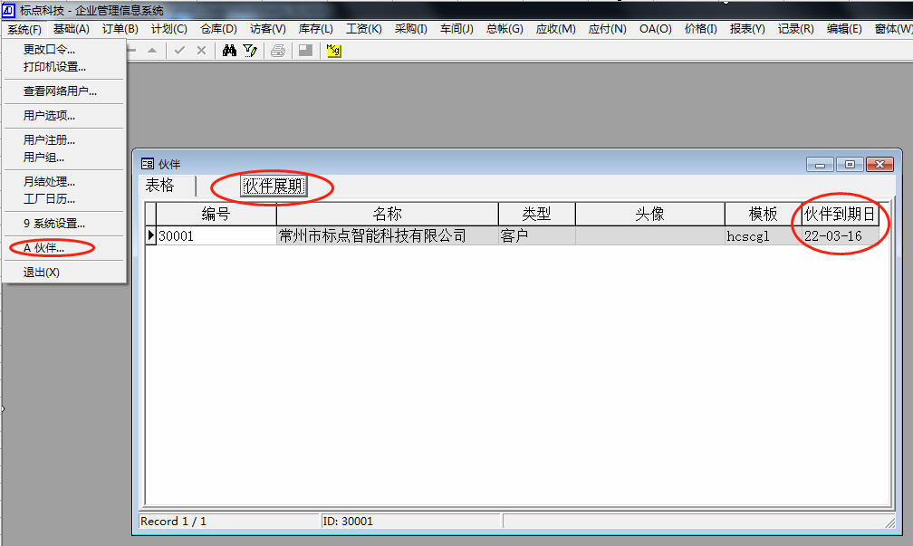 在【系统】菜单下面,点击【伙伴】。打开伙伴窗体。